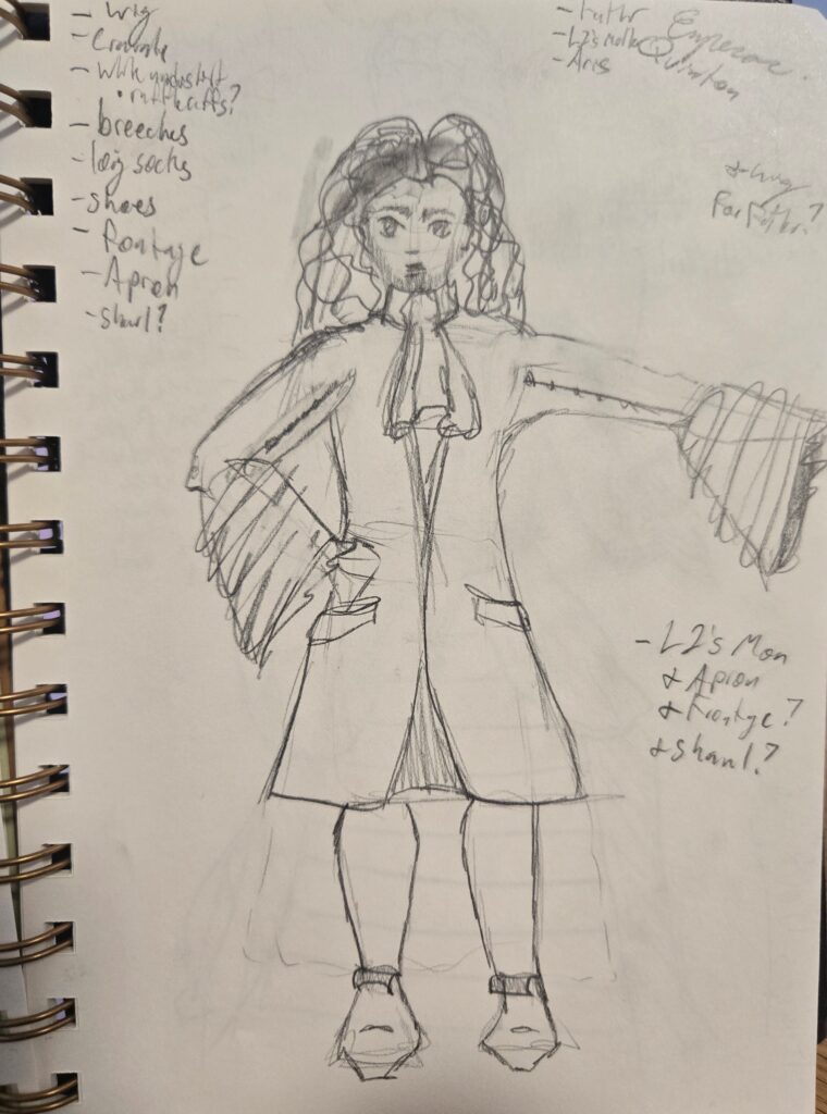 I was put on this project as the costume designer three weeks prior to opening night. My priority was to pull and fit, relying on my research to guide the design in my head. At some point I would like to make renderings.